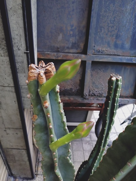 手前の2輪は火曜日明け方当たり咲きそうですね。