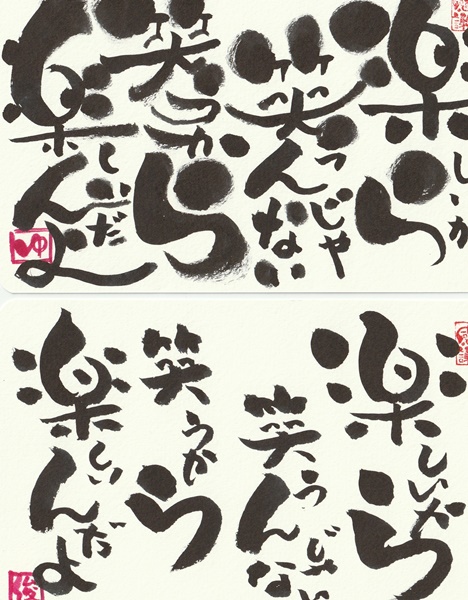 2回目の絵手紙教室。本日も字のみでしたが、やっぱり面白い!
