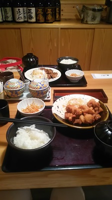 から揚げ定食と豚の生姜焼き定食を注文しました。