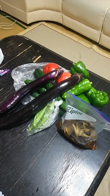 なが~い、なす! 本日、京丹後からお客様がご来店! おばあちゃんの畑で採れたお野菜をいただきました。 手作りキュウリのQちゃん美味しかった。(゚д゚)メチャウマー いつも本当にありがとうございます! 松本でした。 皆様のご来店をお待ちしております。